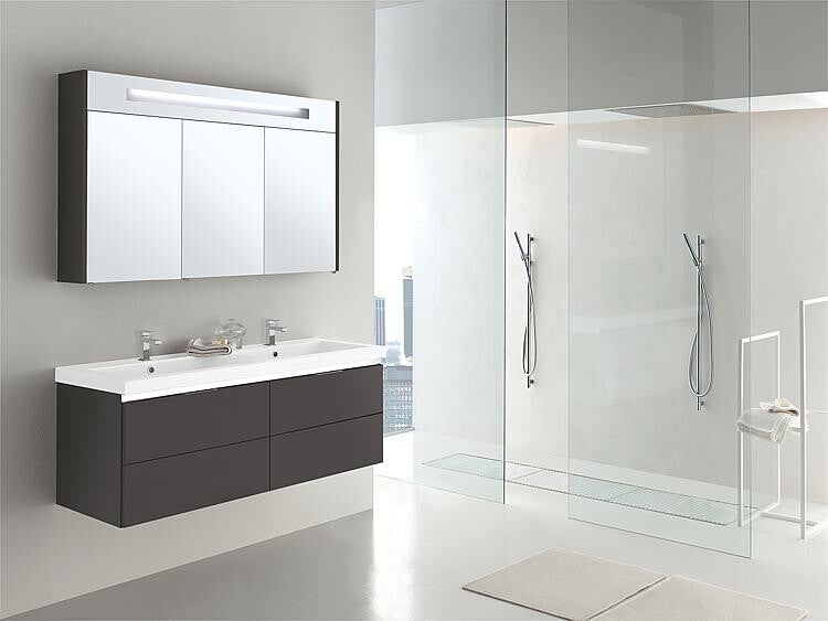 Waschtischunterschrank mit Doppelwaschtisch aus Mineralguss