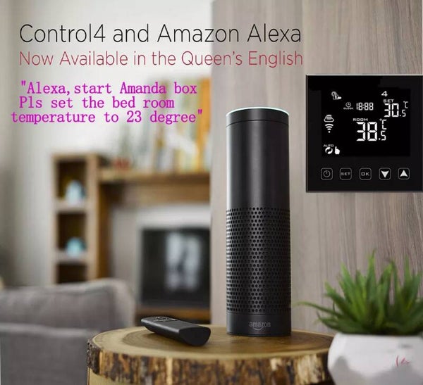 Jetzt in Queen's English erhältlich„Alexa, starte Amanda-Box Bitte stellen Sie das Schlafzimmer einTemperatur bis 23 Grad"